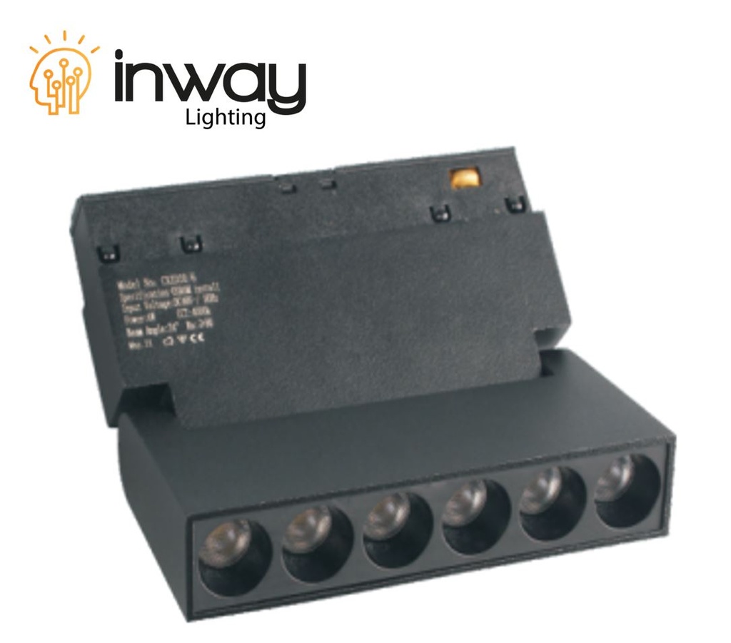 Lampara Magnetica LED p/Riel de 20mm de ancho con Rejilla, 6W, 4.41"(112mm), NW 4000K, 48Vdc, Instalacion: Empotrar o Superficie, 30 Grados, Negra